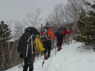トレースから外れるとやはり雪は膝くらいまであり、4人で順番にラッセルを実施し、多少の練習をすることができた。