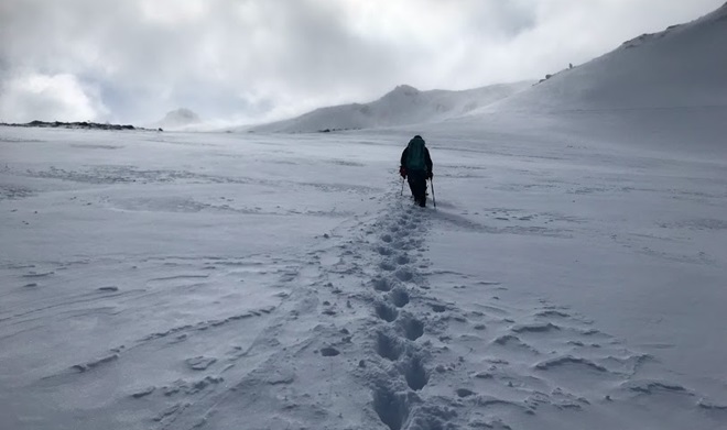 平日だが登山口からトレースがしっかりついていた。しかし勢至平分岐からはトレースが弱くなっており稜線に出ると強風でトレースがかき消され表面のわずかな凹凸を頼りに進んだ。樹林の上に積もったゆかゆかの雪に足をとられ腰まで雪に埋まってしまう事もあり、やはりわかんは持っていくべきだった。ラッセルの為コースタイムを45分オーバーした事と、夕方から天気が崩れる予報を考慮して14時半峰の辻にて登頂を見送る事に決めた。くろがね小屋に向かう道はトレースがしっかり残っていた。