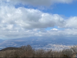 往路の分岐を過ぎると3か所渡渉がある。足場はあるので問題はないが、苔むした岩を誤って踏んでしまいすべって転んでしまった。丸鉢山、猪鼻砦跡あたりに来ると遠くの景色を望めるようになる。全体的に天気は良かったにもかかわらず残念ながら富士山周辺は雲に囲まれていた。