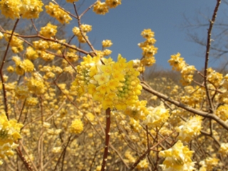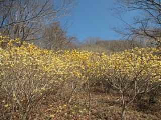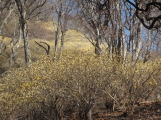 今日の天気は快晴。8:25準備をして出発する。10分程で大ノ山の登り口に到着。一週間前に、ミツマタの開花状況をヤマレコに投稿していた方に出会い、少し立ち話をしてから8:40出発する。30分程急登が続き、暫くすると、ミツマタの群落が現れる。ここからミツマタの群落が延々と続き、写真を撮りながら登る。