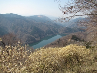 山頂を少し下った、南東側が少し開けていて、塔ノ岳方面が見えている。11:30出発し、来た道を下る。12:05大ノ山に到着する。10分程休憩し、12:15出発する。南西側の尾根を10分程下り、南に方向転換し急坂を下る。5分程で、ミツマタの群落が現れる。写真を撮りながら20分程下り、小ピークで南東側に方向を変える。さらに、急坂を下り、13:30今日沢橋に到着する。15分程車道を歩き、13:45玄倉の駐車場に到着する。14:00出発し、東名高速に乗り、多少の渋滞にあったが、15:55南林間に到着する。