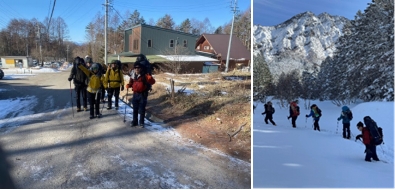 横浜駅と戸塚駅から6:00に出発し双葉SAで合流した。ほぼ同時間に到着した。その後八ヶ岳山荘に9:00頃到着し準備をして9:50に歩き始めた。すぐに道がカチカチに凍っているという情報があったが凍っておらずチェーンスパイクやアイゼンなしで美濃戸山荘までいけた。天気が良く汗ばむ状態だったので途中で着るものを調整した。