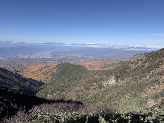 中央稜から下山する際、約2070地点で多くの登山者を誘惑する広河原沢側の謎のピンクテープに絆され20分程ロスする。この先で行き詰って岸壁から懸垂下降を何回かして生還する記録を複数読んだので、大人しく引き返す。途中むやみに右岸と左岸を行き来させる消えかけたペンキなど、登山者を程よく困惑させる中央稜の魅力を再確認し、15時に船山十字路に着いた。