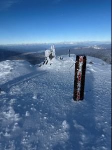 4時半起床、ヘッ電を付けて6時6分出発する。風は穏やかで降雪は止んでいる。雪質は昨日に比べて結晶の結合が見られ若干安定した為、中岳沢から北稜分岐の樹林帯に入る。トレースの轍が微かに残っておりルートに迷う事はないが、終始ラッセルが続く為に岩稜に辿り着くまでに体力が持つか不安になる。6時半頃になると空が白み始め、7時17分にジャンクションピークに着く。