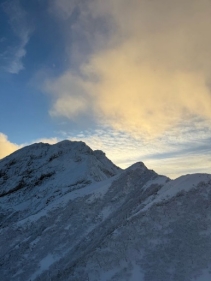 10時20分頃、バスが美濃戸口に着くと、長野県警の山岳警備隊が登山者を出迎える。登山計画書を提出してから出発する。13時45分に行者小屋に着く。大休止してから、北稜の取付き、トレースの有無、雪質の状態を確認しに行く。北稜の尾根の手前まで登り雪崩リスクを確認する為にコンプレッションテストを行う。湿雪の上に約30pの弱層を確認した。近日の降雪量は多くはないが、強風により煽られた雪が堆積しており、窪地は乾雪が約80p以上あった。自分の付けたトレースも帰りには埋まっていた。明日は本日よりも風が強くなる為、表層雪崩のリスクが高い事を想定して、行者小屋の主人に相談した所、中岳を越えて北稜を一度下り登り返す事が成功法だと教えてもらった。急がば回れという事だ。