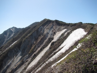 一週間前のヤマレコでは、残雪で引き返している人が居た様なので、チェーンスパイクを持って行ったが、登山道には、雪はほとんど無くなっていて、スニーカーで登っている人もいた。また、この日は、一日快晴で、風もほとんど無く、五月の陽気で、快適に山に登ることが出来た。しかし、日本海や、弓ヶ浜の海岸線が良く見えたが、ほぼ独立峰なので、周りには目立った山も無く、景色は良いが、余り面白みは無かった。遠方でも有り、快晴の日に登ることが出来たことは良かった。
