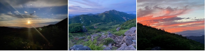 夕刻に白山の稜線のガスは取れ、夕焼けが望めた。