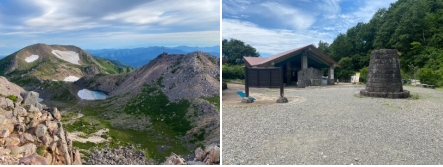 松任駅5時30分発のバスに乗車して市ノ瀬に7時10分に着く。シャトルバスに乗り換え7時25分に別当出会に到着する。登山届けをウエブで行っていたので、スマホで入山チェックをして歩き出す。40分ほどで中飯場を通過して、標高1690m付近で休憩する。9時40分に甚ノ助避難小屋に到着する。天気予報では晴れだが厚い雲に稜線は包まれている。