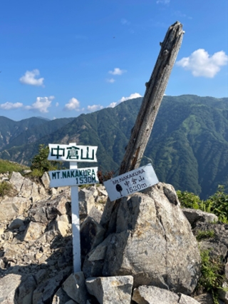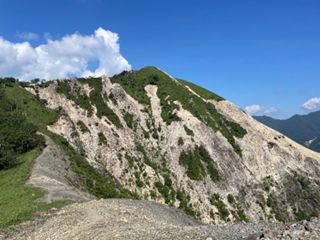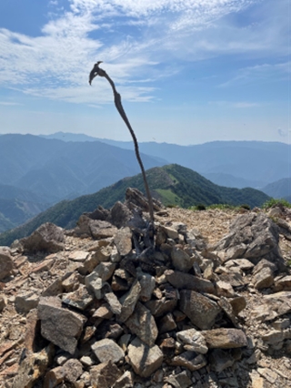 徐々に積雲が発達してきているのが分かったが、もう一つ行きたかった「波平ピーク」へ進むことにする。しかし意外と遠く途中痩せが岩尾根もあり炎天下での登りは少々応えた。波平の看板は無かったが写真を撮って下山を開始する。下山は途中から巻道をつかった。