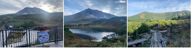 姿見駅6:25-7:55裾合平分岐8:00-8:35中岳温泉9:00-9:45中岳分岐(縦走路)10:15-11:00北鎮岳11:10-11:45お鉢平展望台11:50-12:20黒岳石室12:30-14:00七合目