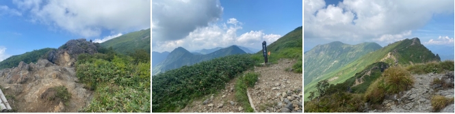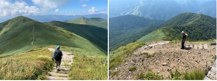 山頂から小屋まで降りて、縦走路に入るとまったくと言って良いほどに登山者は居ない。我々の先に1名の登山者が確認できるだけだ。静かな山歩きをする。