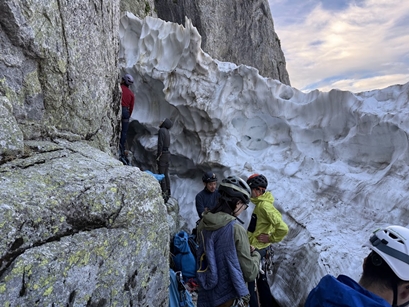 3P目の登り出しが少し足場に困ったが、右側から回り込めば楽に登れたとの事だった。4P目はフォトスポット渋滞が起きており、狭いリッジなどで更に計1時間程は待機したと思う。
