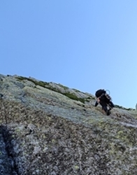 Aフェースは先行して取付いているパーティーがいたが、早々にトップアウトした為、途中のリッジやテラスで渋滞する事は無かった。1P目の中間から右上するギャップは、体を大きく開いて隣の壁をスメアリングで思い切って登っていく事が求められるが、私の体が恐怖により凹壁の中で縮こまってしまい一旦支点を区切って、GENさんにリードを交代してもらった。GENさんが登山靴で右上していく様子を見て、この課題をクリアする為に私はまた再びAフェースを登る事になると思った。