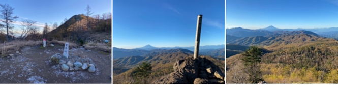 50分弱で笠取山山頂に着くと、何とピーカンで富士山はもとより素晴らしい展望に感激する。