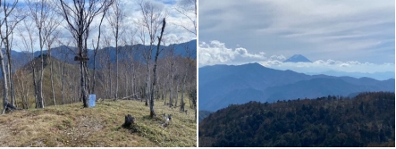 稜線の登山道からの分岐が良く分からずにヤマップの地図で確認しながら、踏み跡程度の登山道を縦走路から25分ほど行くと西御殿岩に着いた。実に展望の良い所で雲取山への稜線や富士山などが確認できた。